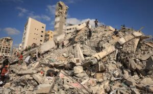 Neste sábado (6), o Exército israelense destruiu mais um prédio residencial na Cidade de Gaza, após determinar a evacuação de bairros inteiros e declarar uma “zona humanitária” no sul do território, reporta as principais agência de notícia do mundo. Segundo estimativas da ONU, cerca de 1 milhão de pessoas permanecem na região.
