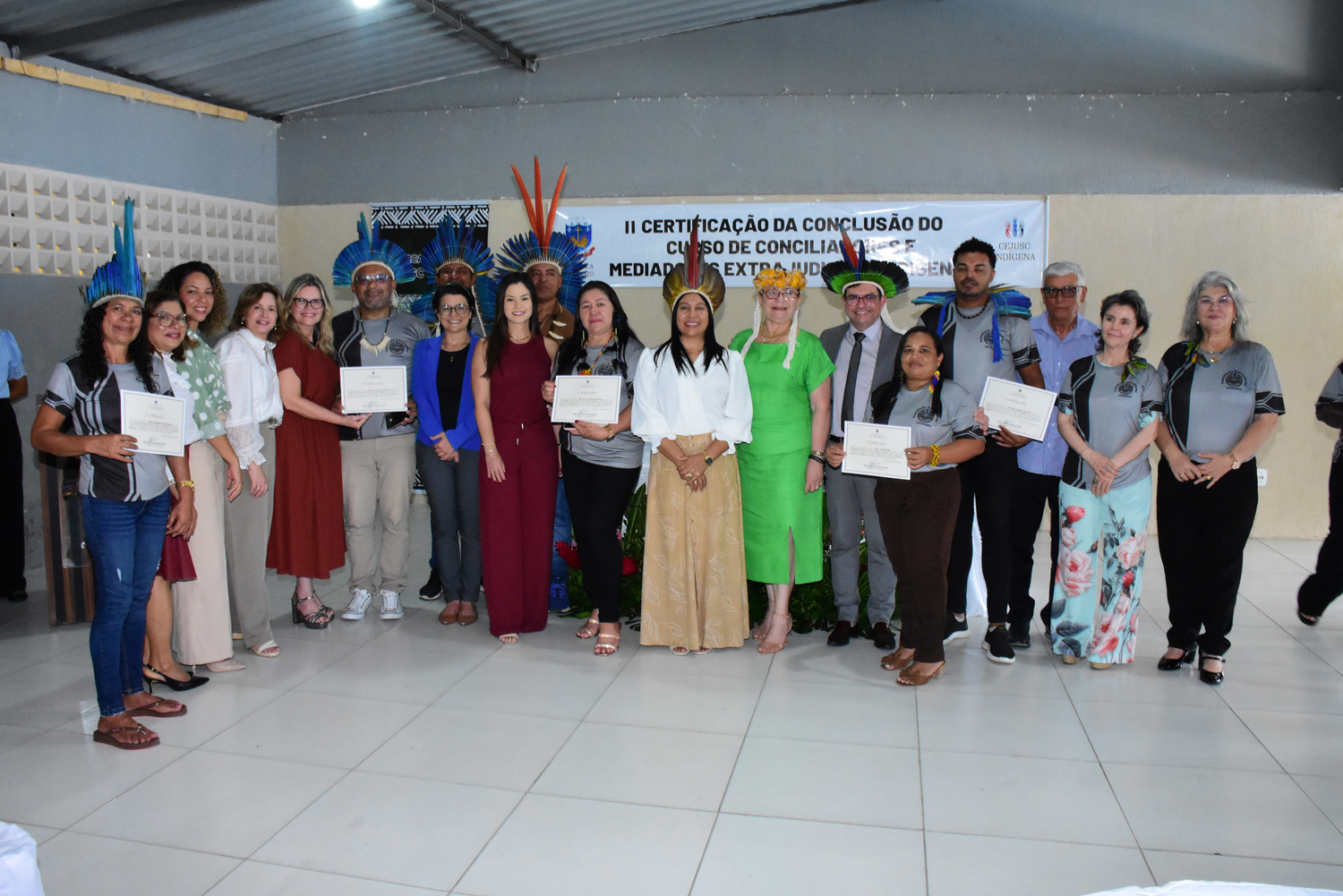 Em outubro de 2024, o Cejusc Indígena entregou os certificados a mais de 45 indígenas que haviam participado, em julho, do primeiro módulo do curso de Conciliação Extrajudicial para Povo Indígena.