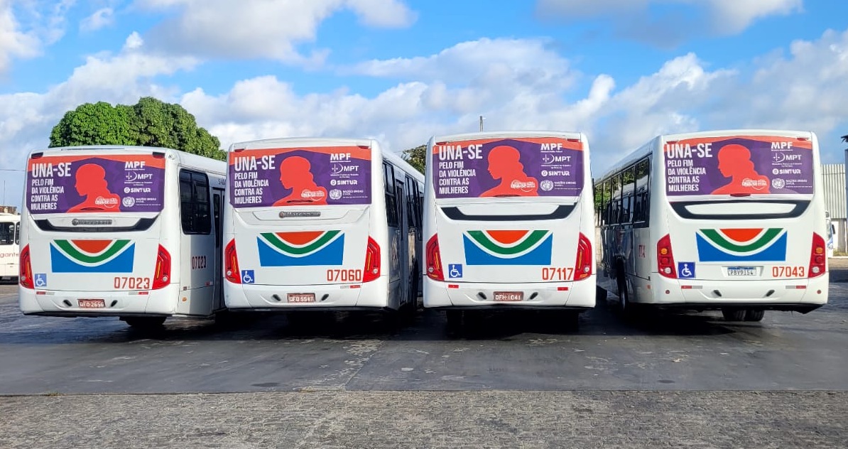 Desde esta segunda-feira (24) começaram a circular nos ônibus do transporte coletivo de João Pessoa a campanha “UNA-SE pelo fim da violência contra as mulheres”. A ação de conscientização, exibida no formato de busdoor, é resultado de uma parceria entre o Sindicato das Empresas de Transporte Coletivo Urbano de Passageiros do Município de João Pessoa (Sintur-JP), o Ministério Público Federal na Paraíba (MPF) e o Ministério Público do Trabalho na Paraíba (MPT).