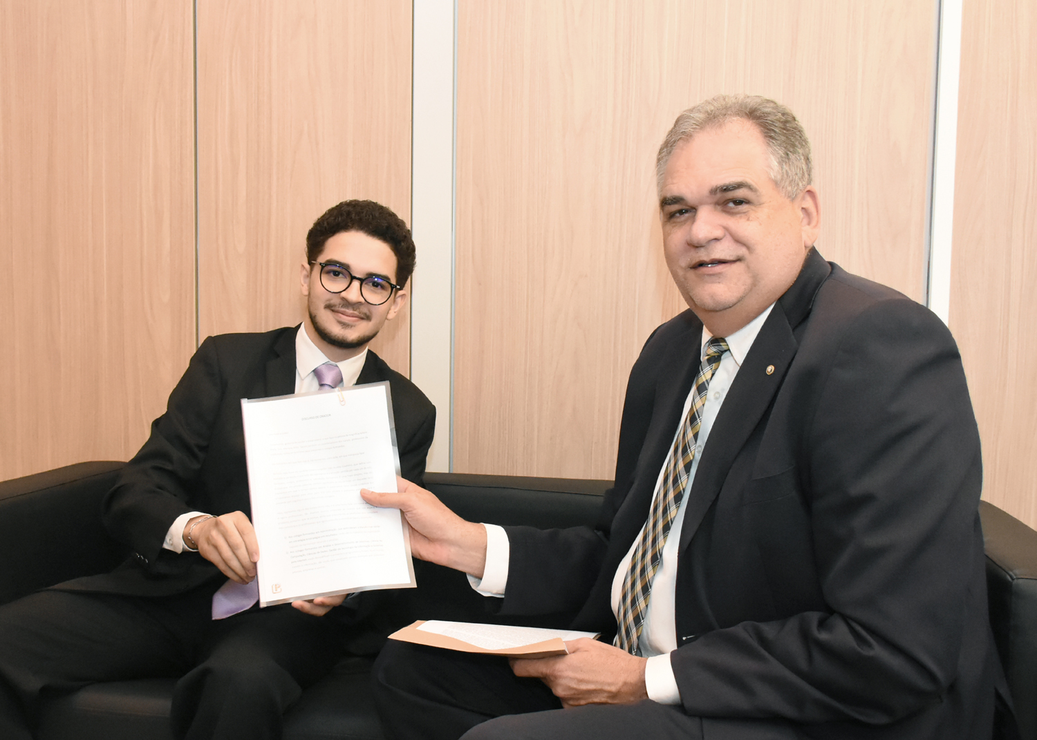 O legado do professor e desembargador Júlio Aurélio Coutinho (In memoriam) permanece vivo, por meio de seus ensinamentos que, ainda hoje, reverberam em ambientes acadêmicos. Nesse diapasão, a arte milenar de presentear encheu de emoção o Gabinete da Presidência do Tribunal de Justiça da Paraíba, nesta sexta-feira (30), momento em que o desembargador Fred Coutinho recebeu das mãos do jovem André Fernandes um presente que trouxe à tona a lembrança do professor Júlio Aurélio.
