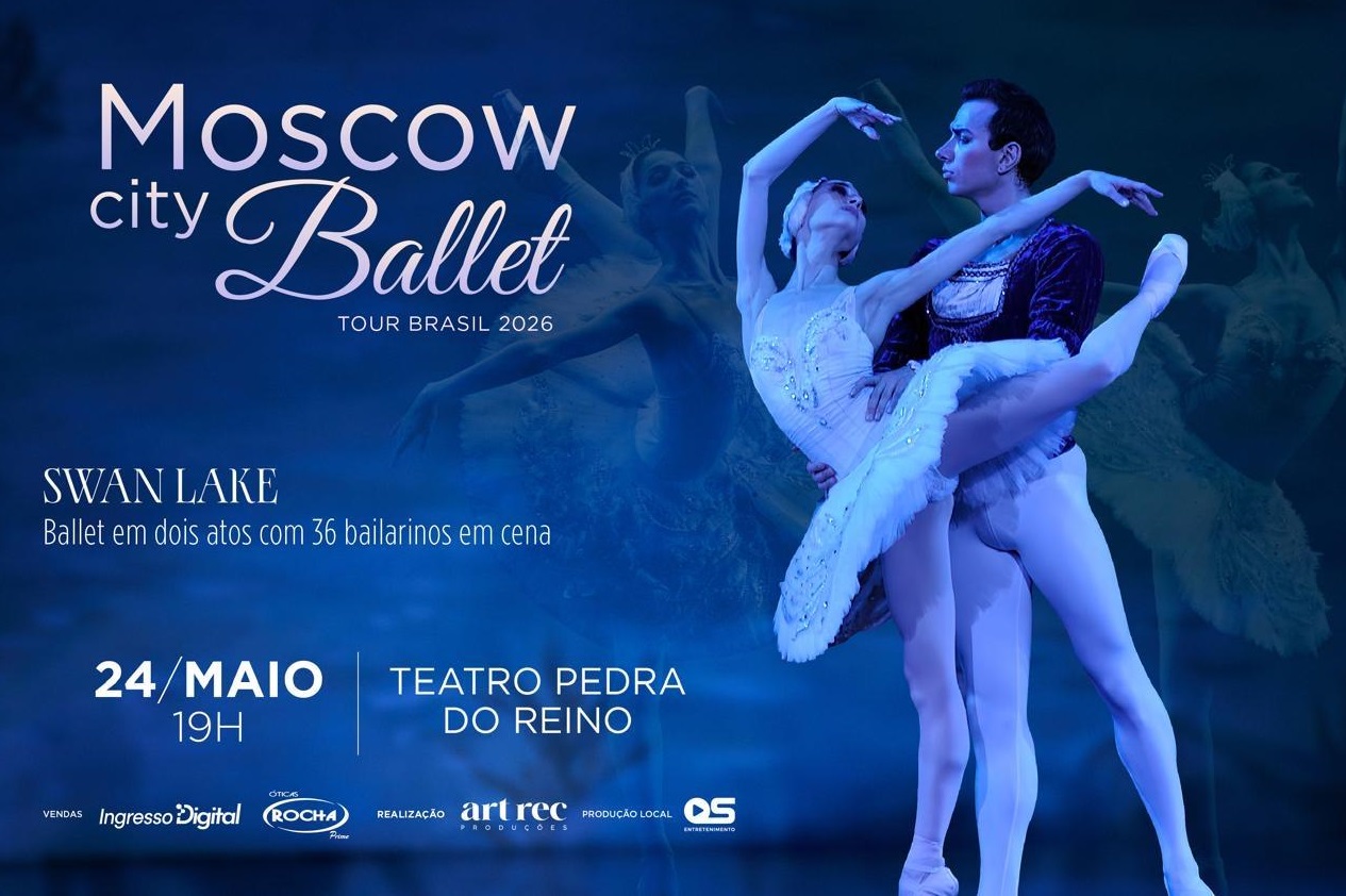 Reconhecida internacionalmente, a Moscow City Ballet retorna ao Brasil em 2026 e inclui João Pessoa na turnê com o clássico “O Lago dos Cisnes”. A apresentação acontece no dia 24 de maio, às 19h, no Teatro Pedra do Reino.