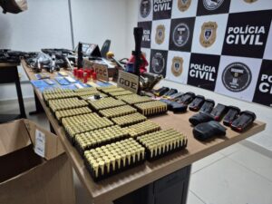 Além das armas, foram apreendidas também 3.500 munições e coletes à prova de bala.