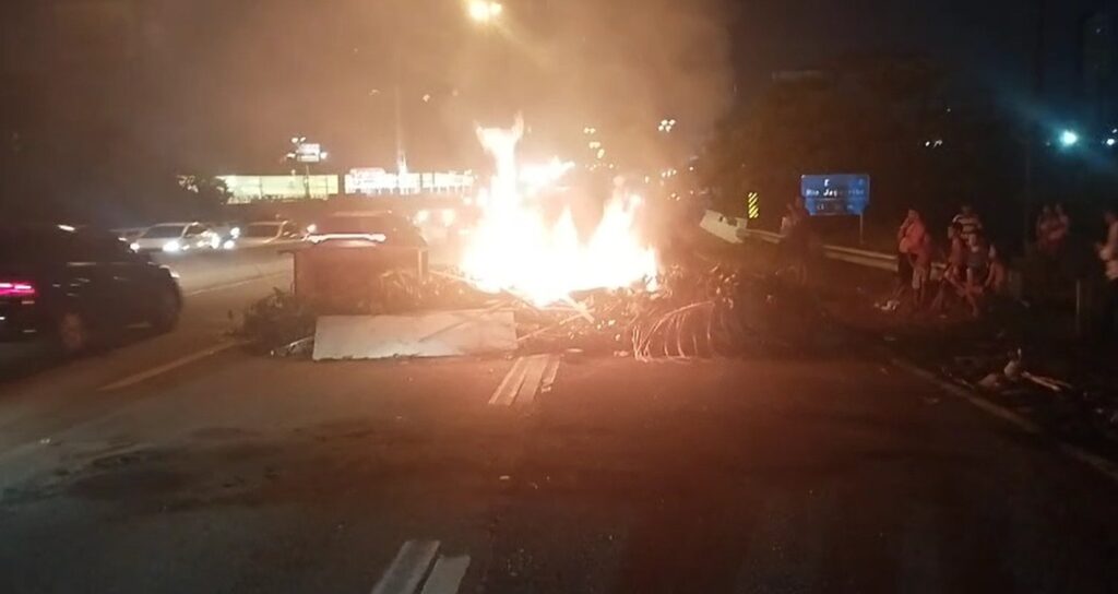Pelo segundo dia, moradores do bairro de São José, em João Pessoa, bloquearam faixa da BR-230 entre Cabedelo e a...