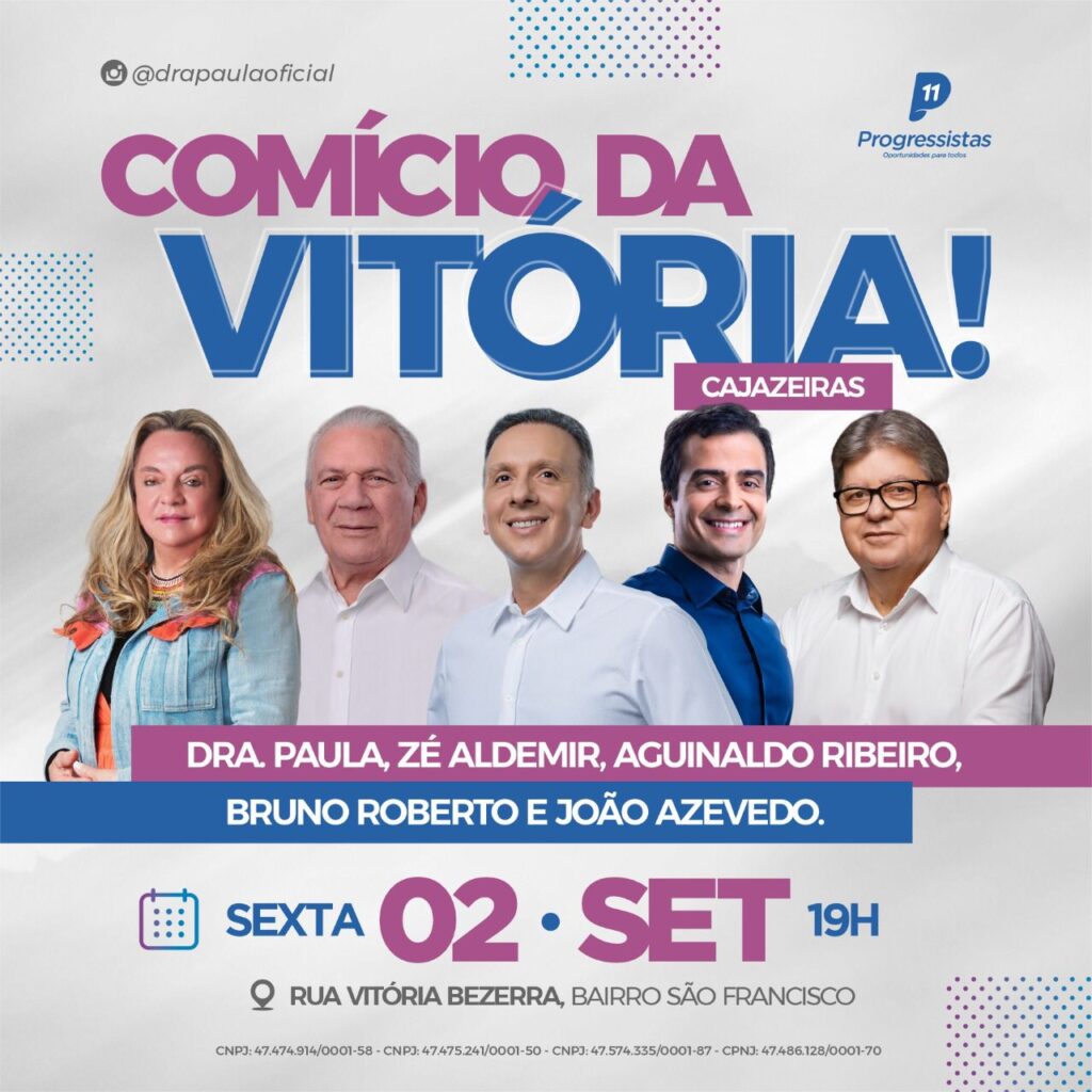 A deputada estadual e candidata à reeleição, Doutora Paula (Progressistas) e o prefeito de Cajazeiras, Zé Aldemir, realizam nesta sexta-feira...